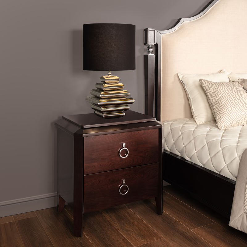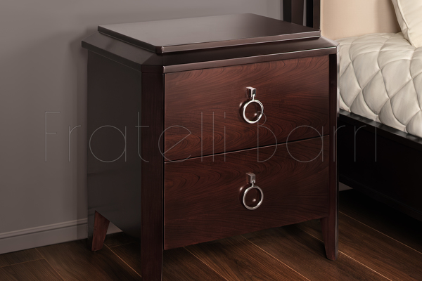 Bedside table with 2 drawers of full extension in neoclassical style. Finished in cherry veneer. Made of high quality "MDF" and solid wood, metal handles. All drawers are equipped with rails.