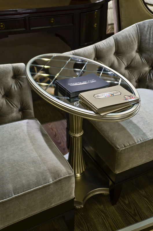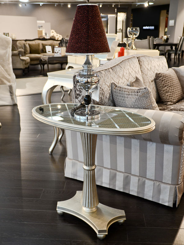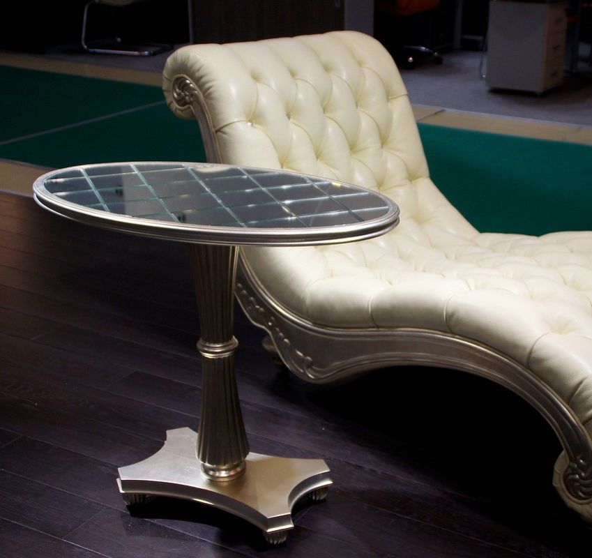 Side table in art-deco style. Top - glass. Legs and base finished in silver plated B.