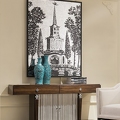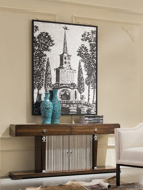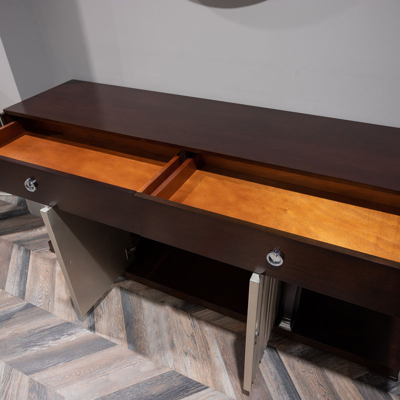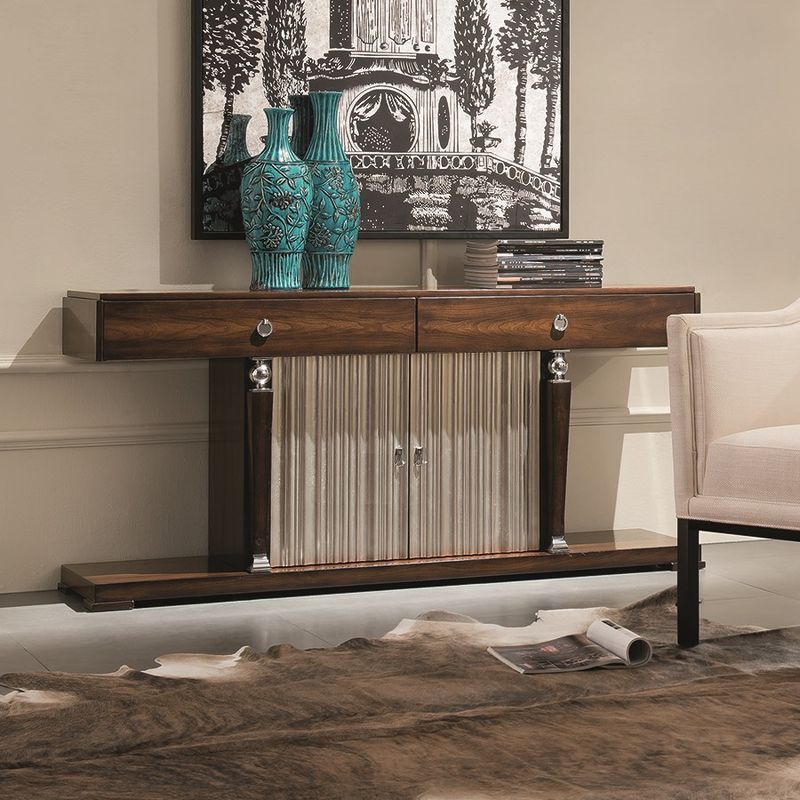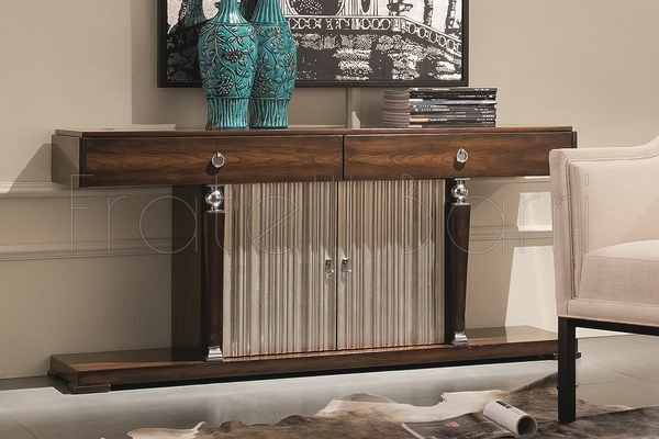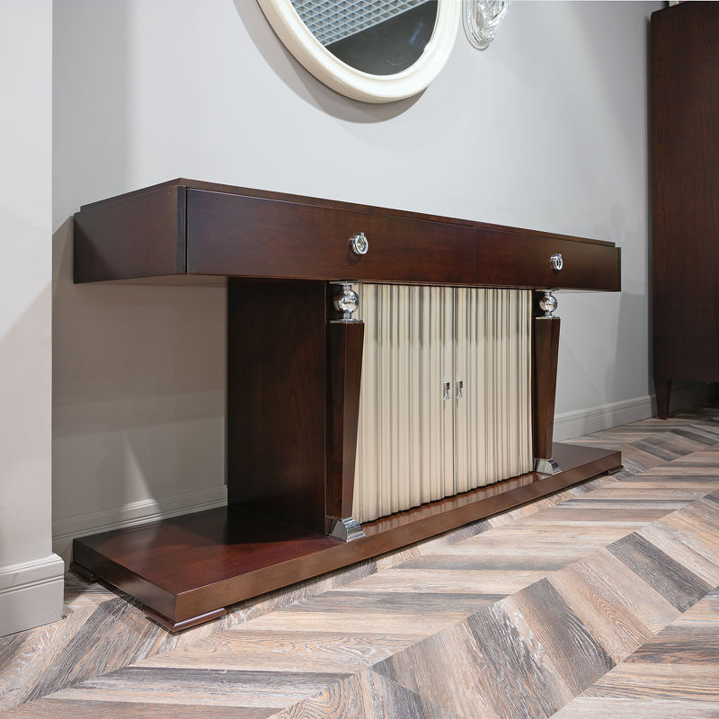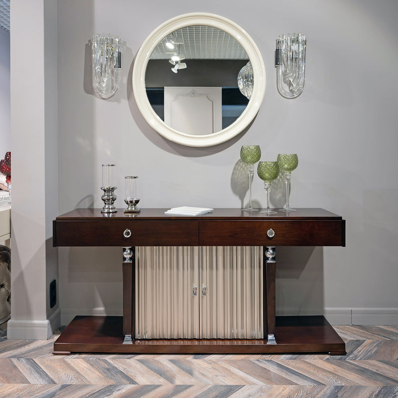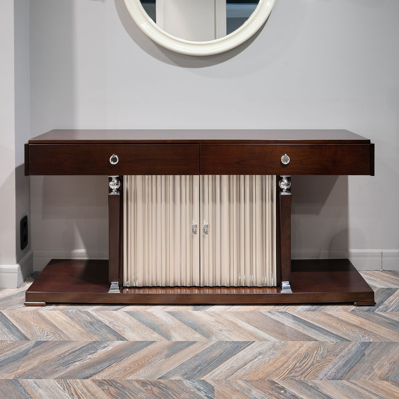 Console with 2 drawers of full extension in neoclassical style. Finished in Cherry C , front in silver plated B. Made of high quality "MDF" and solid wood. All drawers are equipped with rails.