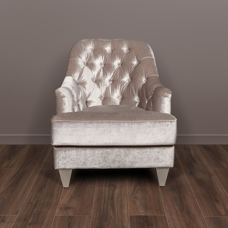 Armchair, finishes silver plated B, fabric silver grey velour