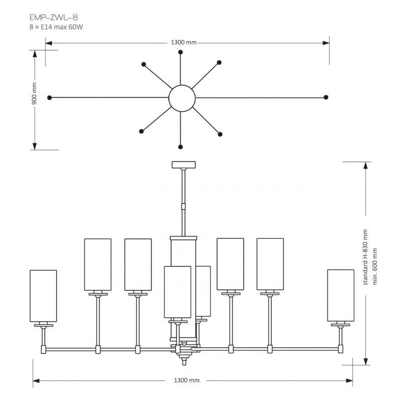 Светильник Empoli люстра, 8 рожков, Kutek mood, золото Абажур к светильнику 21-8, EMP-ZW-8 (Z)
