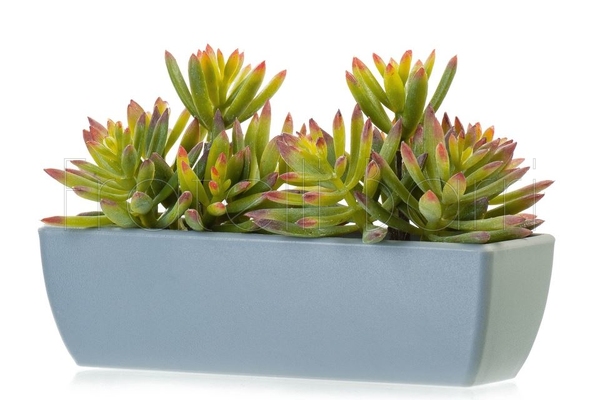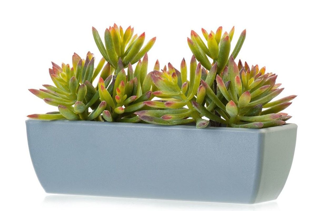 Суккулент Седум зелёно-бордовый в сером кашпо