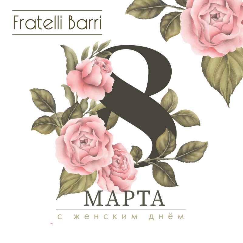 С наступающим 8 марта! Компания Fratelli Barri желает вам всего самого светлого и прекрасного!Пусть весна расцветает в душе и наполняет ее радостью и красотой, пусть этот праздник оставит множество ярких впечатлений и красивых, романтических моментов! Пусть невозможное – станет возможным! Успехов и радости во всем! 07.03.2020